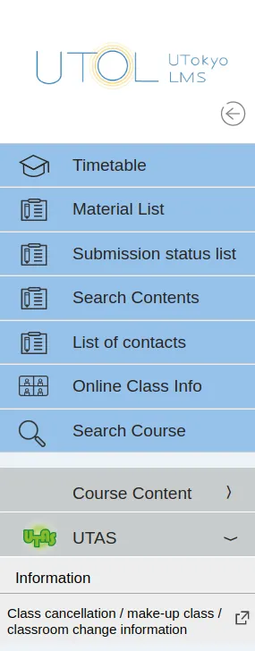 This page explains how to use UTOL as a student enrolled at UTokyo. For instructions on how to use UTOL as a course instructor or TA, please refer to the “Using UTOL as a Course Instructor or TA”.