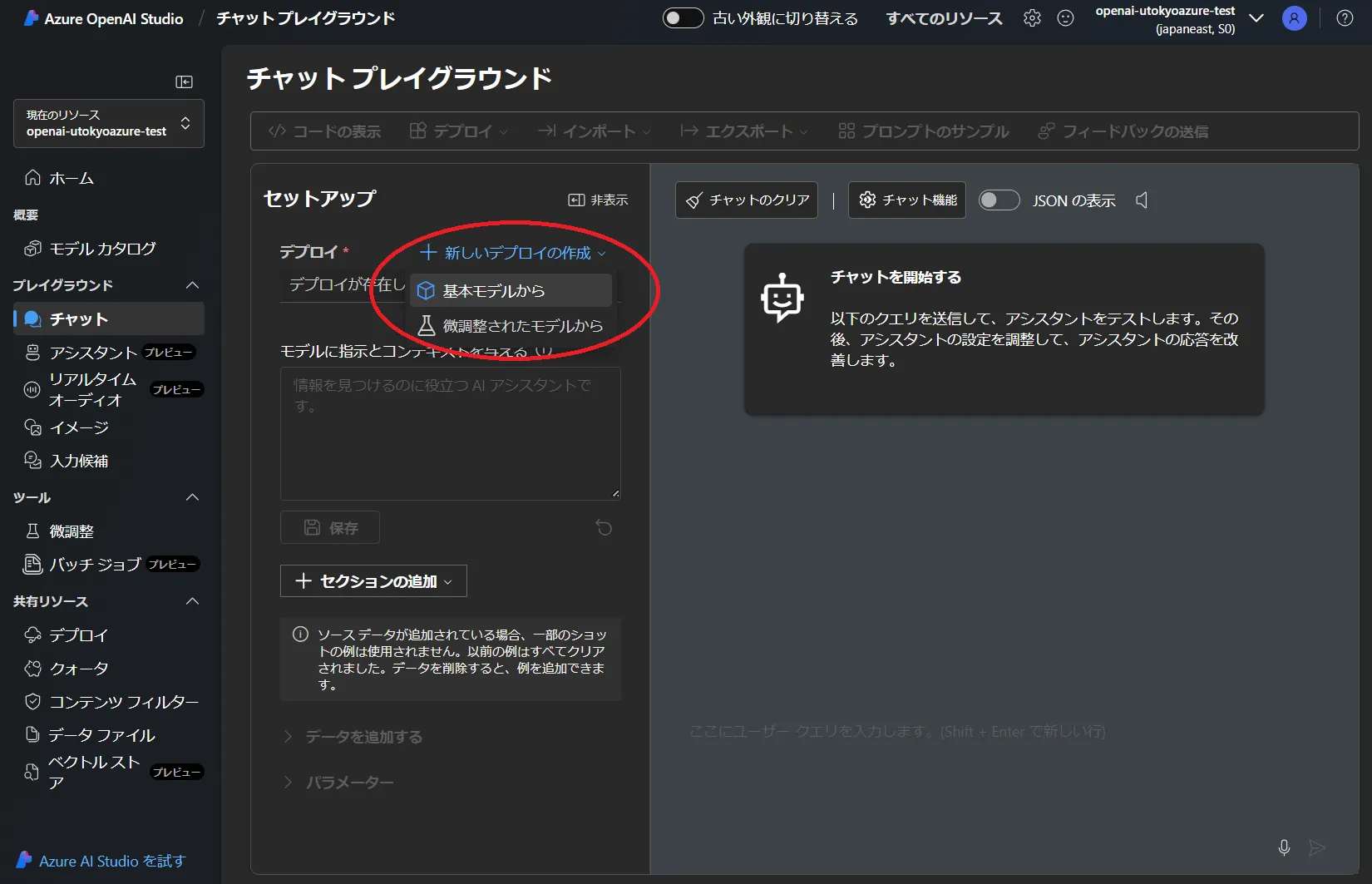 - Azure OpenAI のメインページが表示されたら,画面左上にある