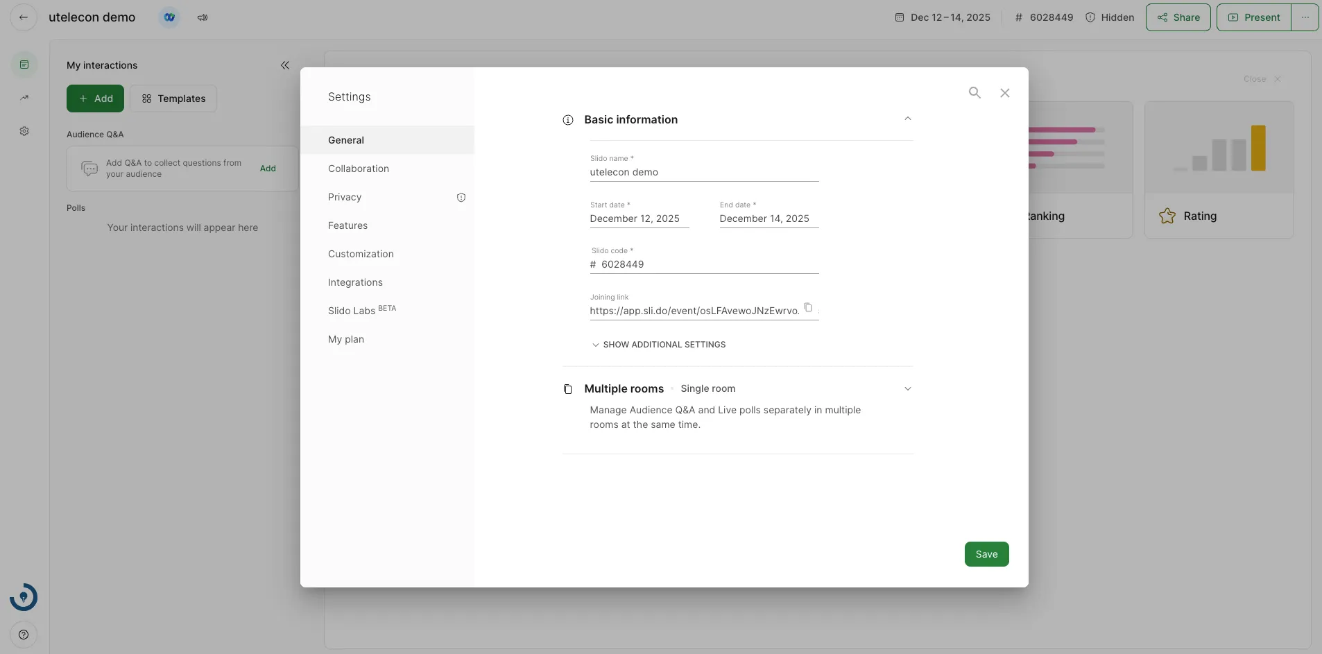 東京大学のアカウントでSlidoを利用する場合,無料のアカウントと比べて,イベントの設定を細かく変更することができます.