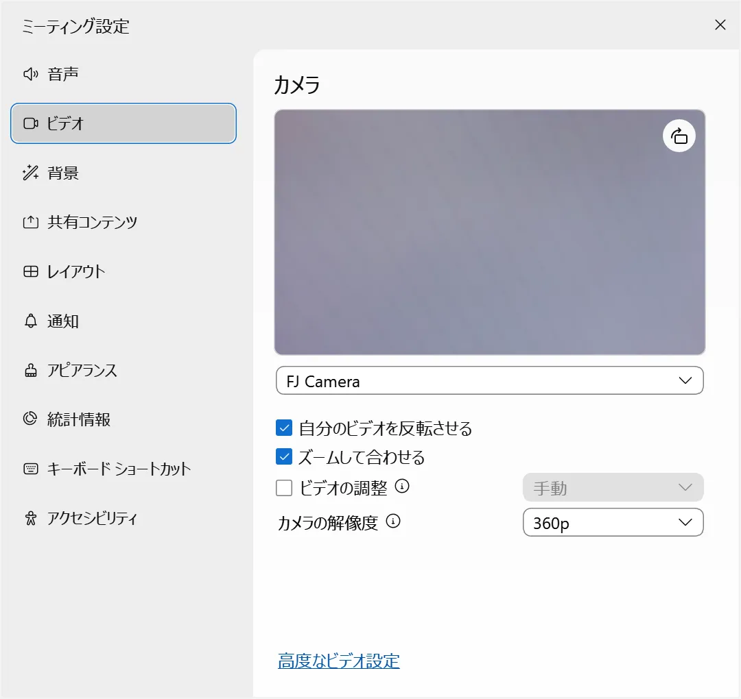 - 仮想背景 : バーチャル背景を設定することができます.一部の端末ではバーチャル背景が設定できないことがあります.